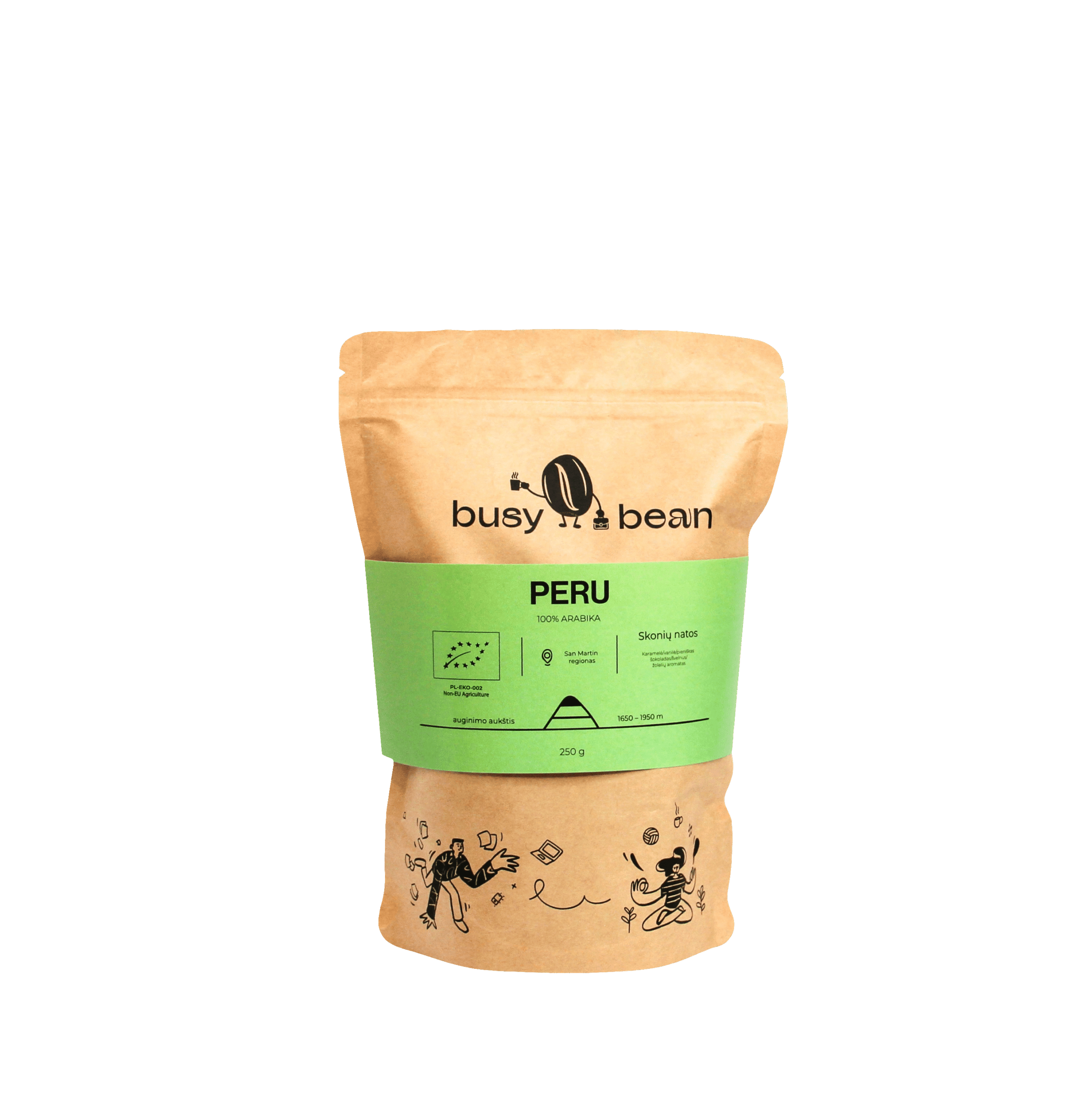 Ekologiškos kavos pupelės iš Peru – ši kava gaunama iš nedidelių šeimyninių kooperatyvų, įsikūrusių šiaurės Peru Amazonės, Cajamarca ir Huabal regionuose.
